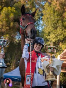 وجاء تتويج الفارسة البطلة على صهوة "لسي ساشمو" لإسطبلات الوثبة، وهو الفوز الثاني للفارسة لتحتفظ مع الجواد باللقب، وهو التتويج الحادي عشر لإسطبلات الوثبة التي أضافت انتصارا جديداً في سجل إنجازات البطولة، بعد اتباع أسلوب ناسب معظم مراحل السباق الماراثوني، محققة6:02:37 ساعة، وبمعدل سرعة بلغ 26.47 كلم/ساعة.