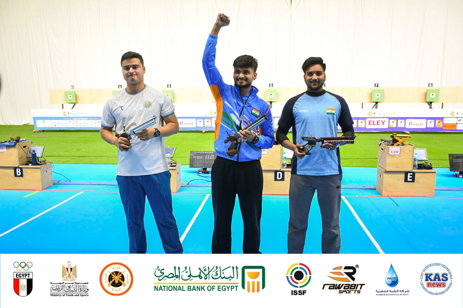 وفي منافسات مسدس الهواء 10 متر رجال ناشئين، واصل لاعبو الهند تألقهم، حيث أحرز ناروال شيفا الميدالية الذهبية بعد أداء لافت، بينما جاء الأوزبكي عبد الله‌يف سوديكجون في المركز الثاني محققاً الميدالية الفضية، وحصد الهندي شارما شراج الميدالية البرونزية، في تأكيد واضح على قوة المدرسة الهندية في منافسات المسدس.
